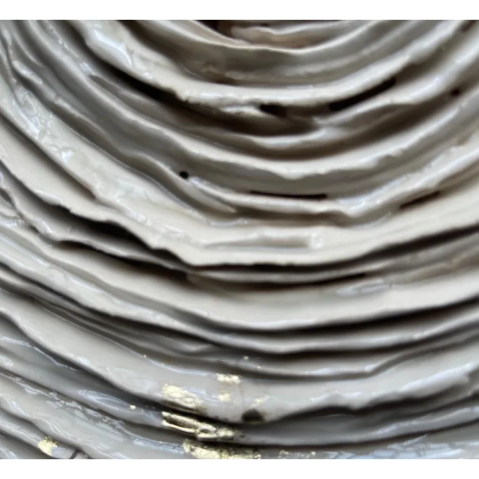 - Kırık beyaz ekru tonlarıda seramik sır üzeri altın yaldız uygulaması