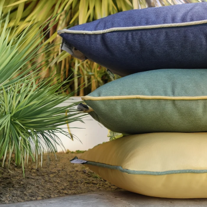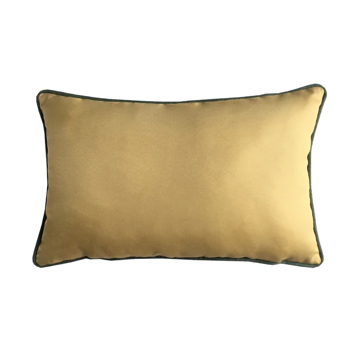 Yüksek kaliteli dış mekan kumaşından üretilen bu yastık yüksek su itici ve solmazlık ile titizlikle tasarlanmıştır ve dış mekan kullanım için idealdir. Çarpıcı sarı rengi, güneşin ışınları altında bile canlı ve büyüleyici kalacaktır. Etrafı zeytin yeşili fitil ile dekore edilmiştir. İçi dolu olarak gönderilmektedir. Ölçü: 35 x 55 cm