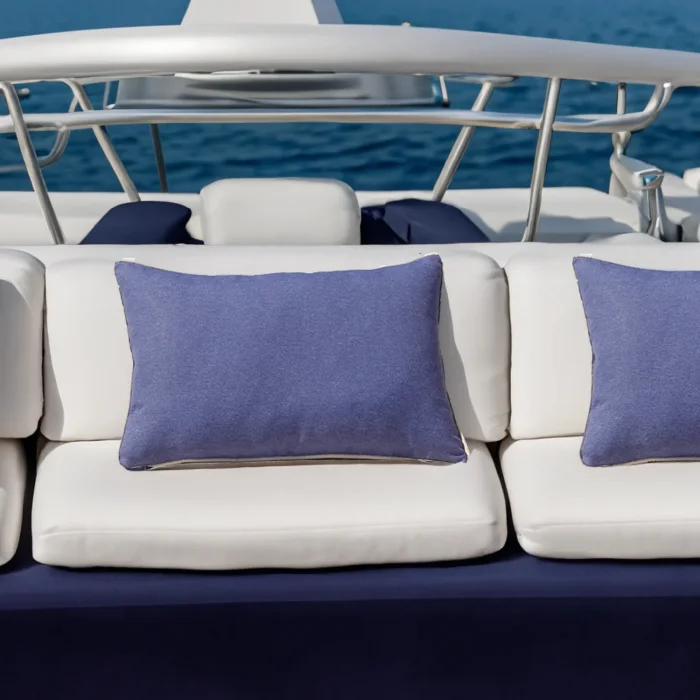 Dış mekanlarınız ve yat dekorasyonunuz için abartısız zarafet ve ince detayların uyumlu bir karışımı olan Ekru fitil ile zarif Özel Tasarım Lüks Lacivert Dikdörtgen Dış Mekan Dekoratif Yastık. Dış mekan dekorunuzu sofistike bir dokunuşla yükseltmek için tasarlanan bu yastığın zarif güzelliğine kendinizi bırakın. Birinci sınıf dış mekan kumaştan tasarlanmıştır. Su itici ve solmazlık özelliği için dış mekan kullanımı için idealdir.