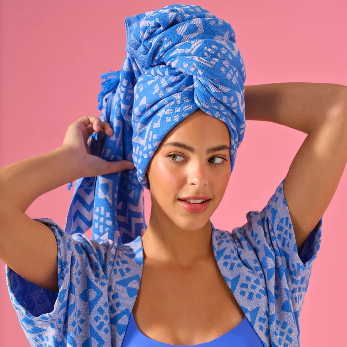 100% pamuklu OEKO-TEX sertifikalı iplikler ile üretilmiştir. Uçları el düğümü yapılmıştır. 3rd Culture'ın 100% pamuklu mavi paro peştemali ön yıkamadan geçer ve ipeksi bir doku kazanır. Hafif ve hızlı kuruma özelliği ile, plaj ve evde kullanım için mükemmel bir yaz aksesuarıdır.