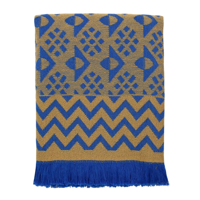 100% pamuklu OEKO-TEX sertifikalı iplikler ile üretilmiştir. Uçları el düğümü yapılmıştır. 3rd Culture'ın 100% pamuklu mavi paro peştemali ön yıkamadan geçer ve ipeksi bir doku kazanır. Hafif ve hızlı kuruma özelliği ile, plaj ve evde kullanım için mükemmel bir yaz aksesuarıdır.