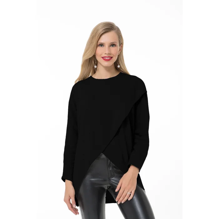 Tamamen ithal pamuktan üretilmiş bu triko kazak dört mevsim giyilebilir. Hamilelik, emzirme ve sonrasında kullanabileceğiniz zamansız bir parçadır. Nefes aldıran ve cilde dost dokusu kadar modeli ile de farklılaşmıştır. Önden iki yana açılan yarasa kanatlar sayesinde emzirme şalı kullanmadan, her yerde rahatlıkla emzirebilirsiniz.
