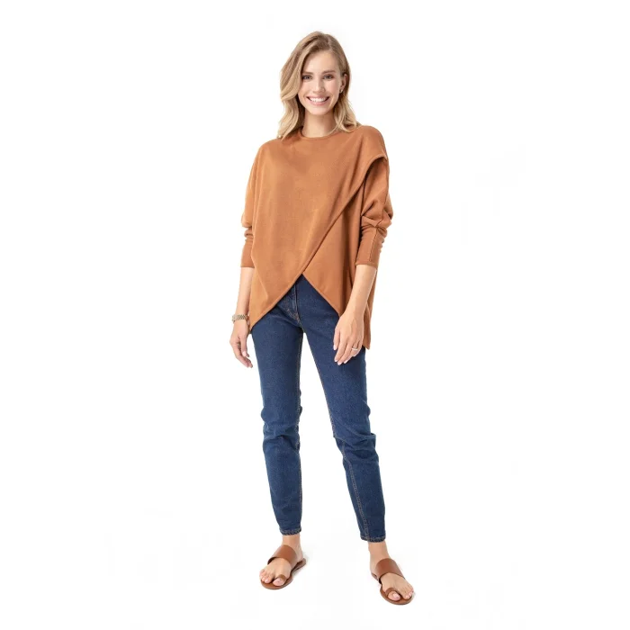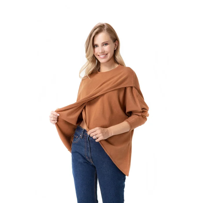Tamamen ithal pamuktan üretilmiş bu triko kazak dört mevsim giyilebilir. Hamilelik, emzirme ve sonrasında kullanabileceğiniz zamansız bir parçadır. Nefes aldıran ve cilde dost dokusu kadar modeli ile de farklılaşmıştır. Önden iki yana açılan yarasa kanatlar sayesinde emzirme şalı kullanmadan, her yerde rahatlıkla emzirebilirsiniz.