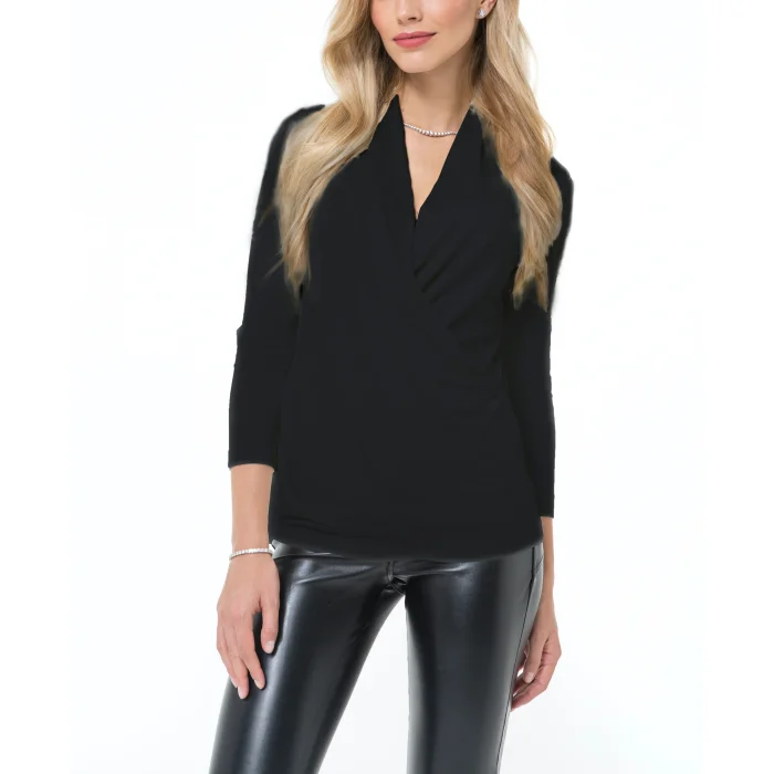 Kumaş içeriği sayesinde nefes aldıran ve tüm vücudunuzu saran bu yumuşacık bluz, özellikle hamilelik ve emzirme dönemlerinde rahat etmeniz için üretilmiştir. Ancak sonrasında da rahatlıkla giyilebilecek zamansız bir parçadır. Dekolte bölgesinin esnekliği sayesinde bebeğinizi kolaylıkla emzirebilirsiniz, emzirme sonrası yaka deformasyonu görülmez. Vücudu saran çapraz geçiş daha ince görünmenizi sağlar.