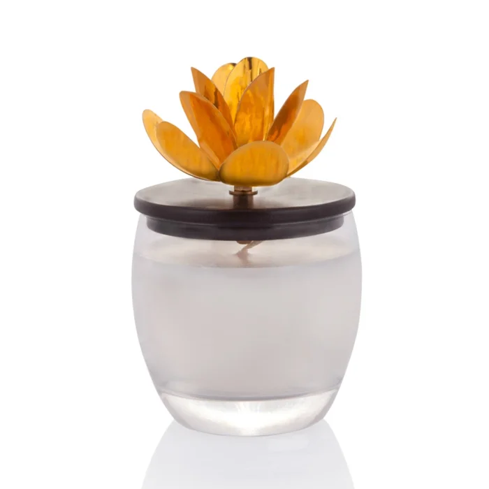 Çap: 6 cm x Yükseklik: 17 cm Gold Manolya Çiçek+ GoldGold kaplama manolya çiçek ile detaylandırılan cam mumluk