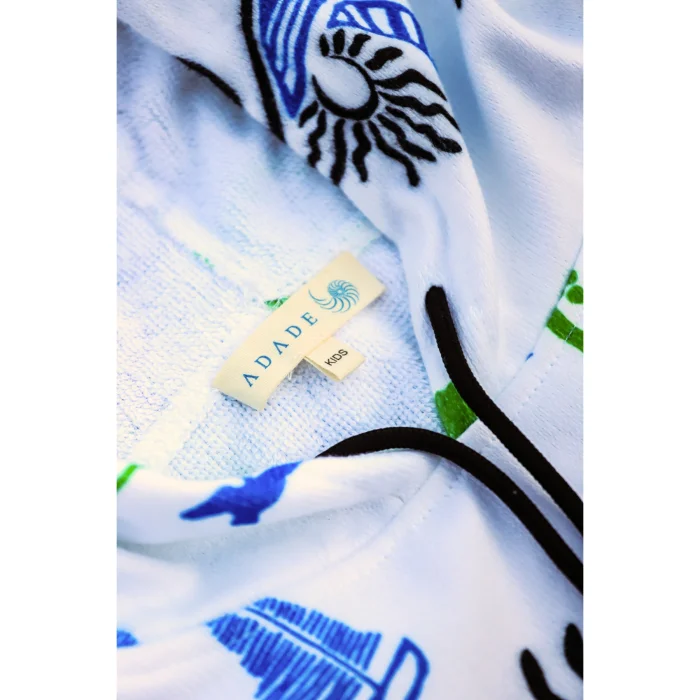 Adade çocuk sörf pançoları, deniz, havuz ve su sporları sonrası çocuklarınız için konforu ve şıklığı bir arada sunar. İç yüzeyi %100 yüksek su emiciliğe sahip Türk pamuğundan üretilmiş havlu kumaşı sayesinde ıslaklığı hızla emerken, dış yüzeyindeki özgün Adade desenleriyle sahilde fark yaratır.