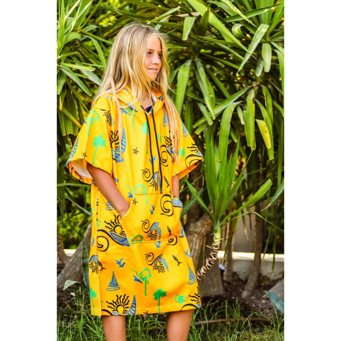 Adade çocuk sörf pançoları, deniz, havuz ve su sporları sonrası çocuklarınız için konforu ve şıklığı bir arada sunar. İç yüzeyi %100 yüksek su emiciliğe sahip Türk pamuğundan üretilmiş havlu kumaşı sayesinde ıslaklığı hızla emerken, dış yüzeyindeki özgün Adade desenleriyle sahilde fark yaratır.