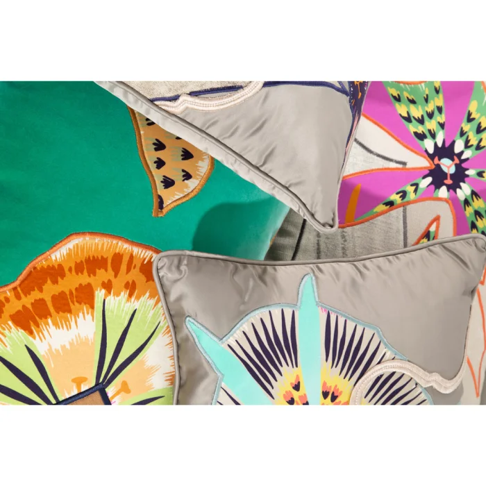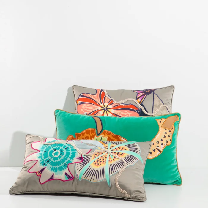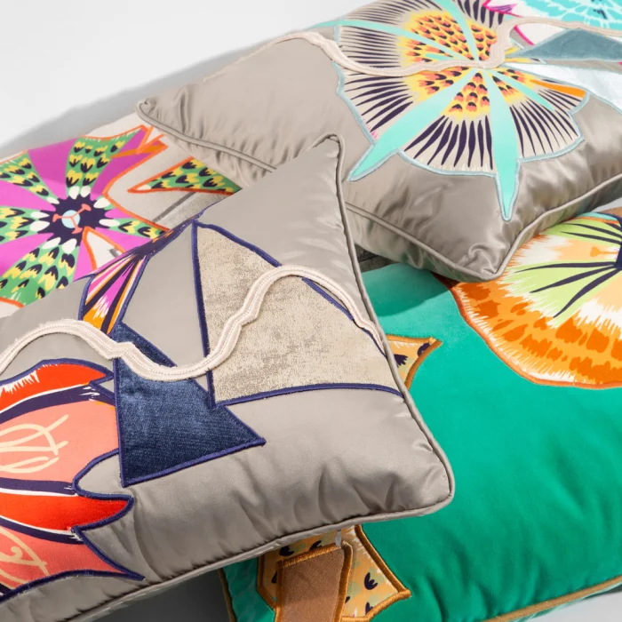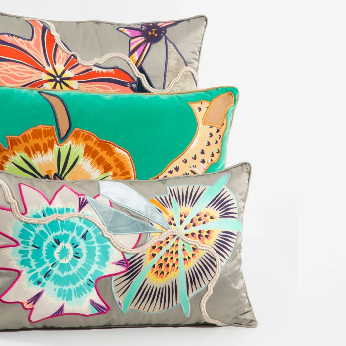 Çoklu Aplik ve kenar fitil detaylı özel seri el yapımı saten yastık. El ile doldurulmuştur iç dolgusu elyaftır.