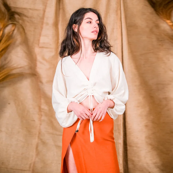 Önden büzgülü ve bol kesim kol detaylaryla bel ve karın bölgeni öne çıkaran yarasa top. Havalı duruşunun yanı sıra koton ağırlık el dokuması kumaşın yumuşaklığı gayet rahat bir hava verir.