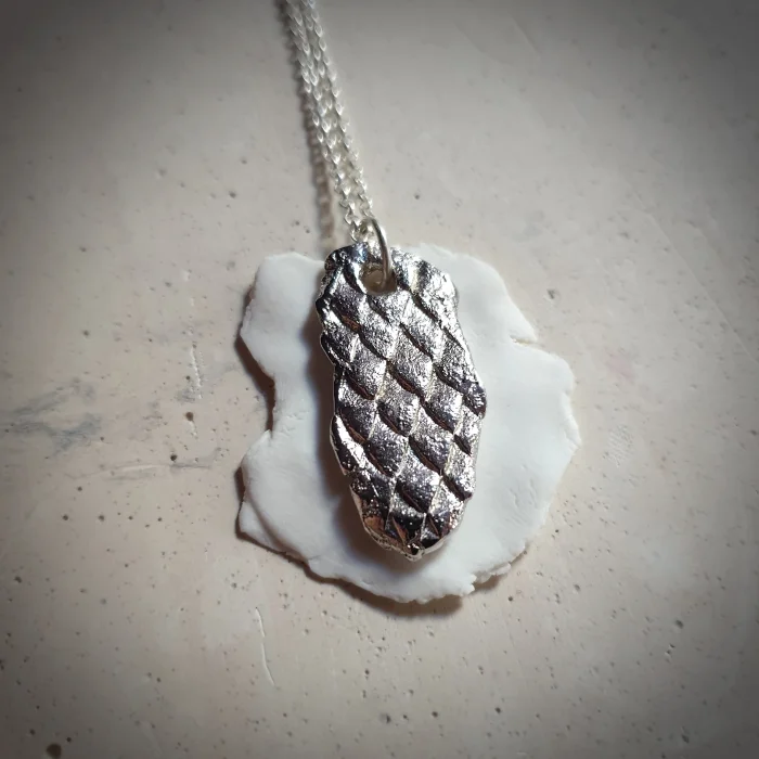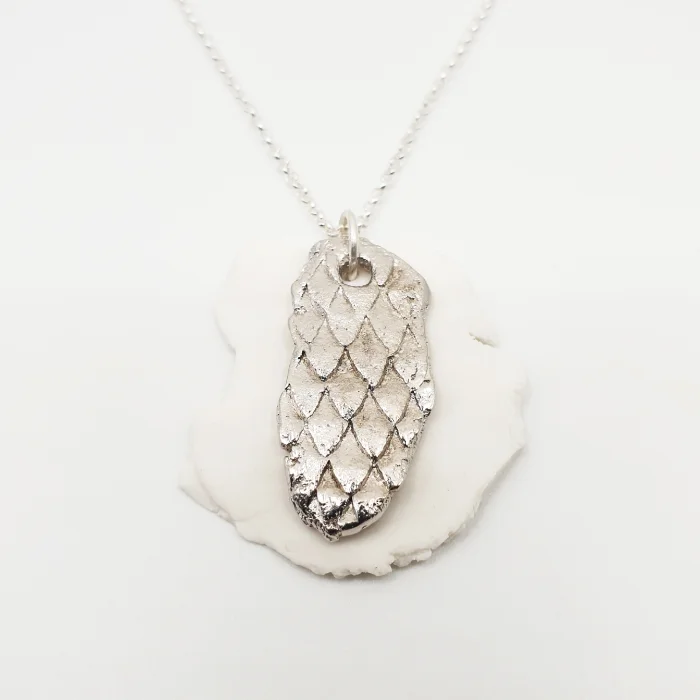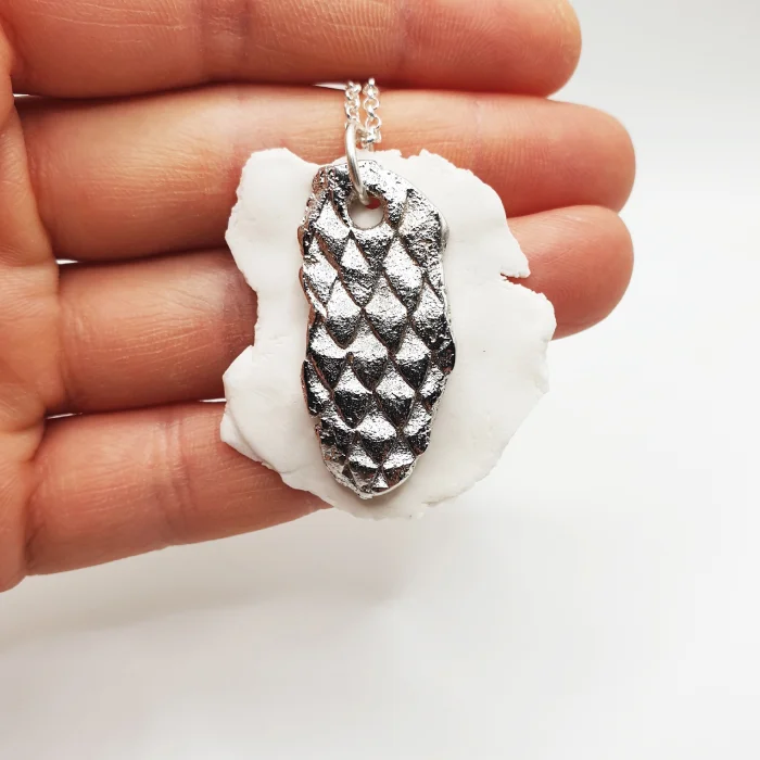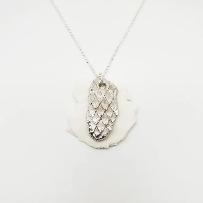 Kolye ucu porselen, dragonskin parça rodyum kaplama. (4cm x4cm)
