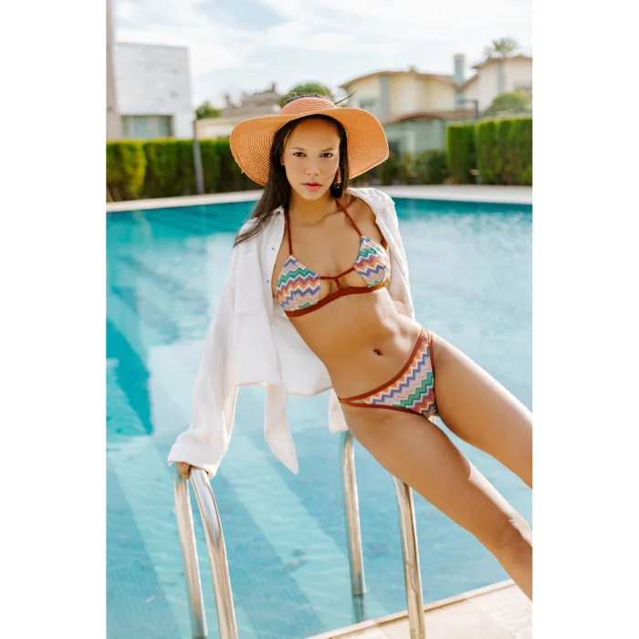 Hawaii Bikini Altı, rahat ve şık bir stile sahip. Yüksek kaliteli kumaş ve tülün mükemmel uyumu, özgün tasarımını ön plana çıkarırken, bel ve paça kısımlarında yer alan biye detayları tarzınıza incelik ve zarafet katıyor. Yanlarda yer alan pencereler, tasarımın modern ve çekici dokunuşunu yansıtırken, slip görünümüyle rahat hareket etmenizi sağlıyor. Hem ön hem de arka kısımlarda kullanılan astar, ekstra konfor sağlarken, güvenilir bir şekilde destek sunuyor. Bu bikini altı, plajın ve havuzun şıklığına katkıda bulunmak için ideal bir seçenek!