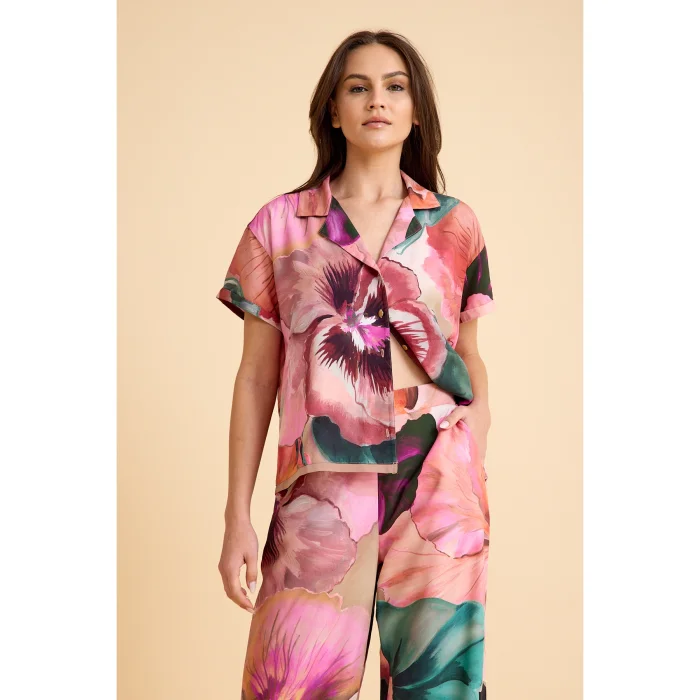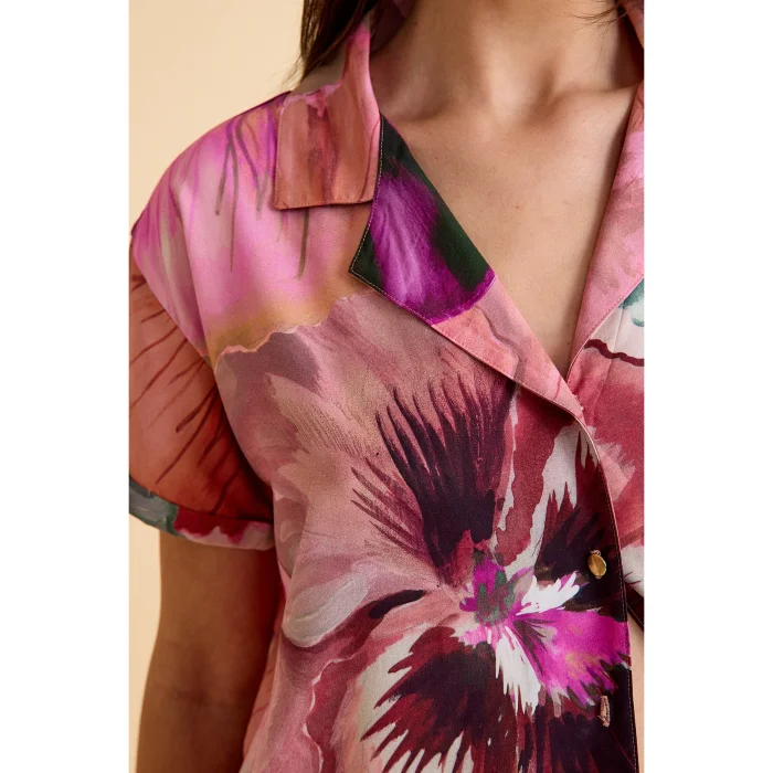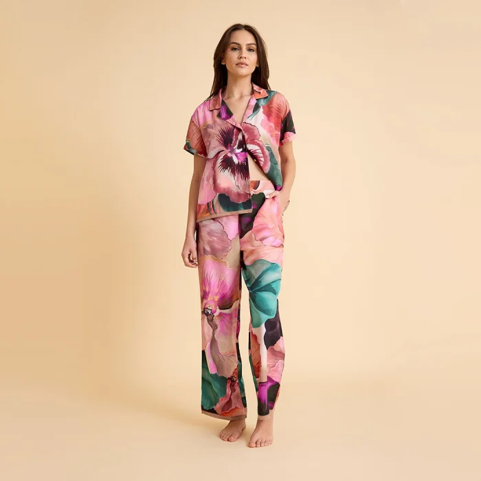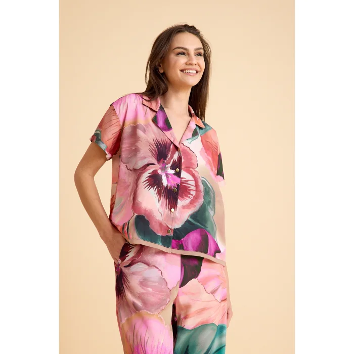 Ürün: Paradise Sklamen Viskon Düğmeli İpeksi Pijama Takım