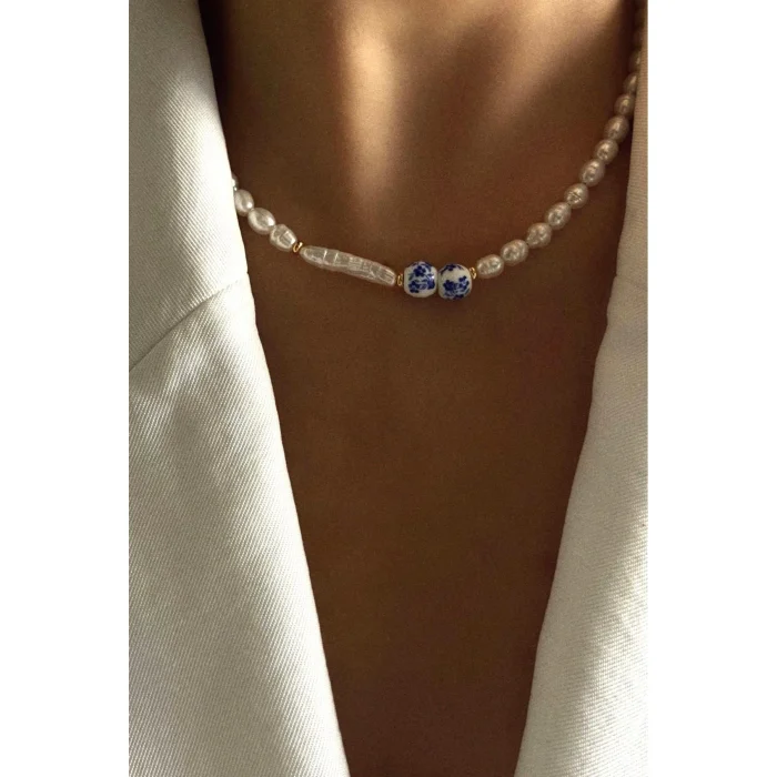 Ürün: Azul Çiçek Boncuk Detaylı İnci Kolye
