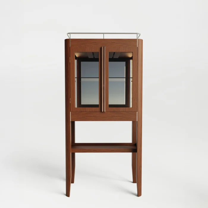 Tasarımımızın temel felsefesi, yalın bir masif meşe vitrin görünümü altında maksimum fonksiyonellik sunmaktır. Ahşap içki dolabının ön bölümdeki çekmecesi açıldığında, EDGE tepsileri ile uyumlu geniş bir hazırlık alanı ortaya çıkar; kullanıcı içkisini hazırlayıp doğrudan servis edebilir.