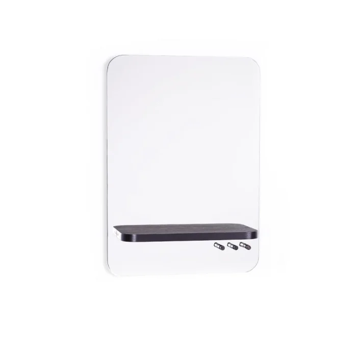 Ergonomik ve yalın tasarımı ile Raflı Dikdörtgen Ayna koridorda, banyoda veya yatak odasında kullanıma uygundur. Rafı, güzellik ürünleri, mumlar, küçük bitkiler veya süs eşyaları için, askıları ise takı ve anahtar asmak için idealdir.