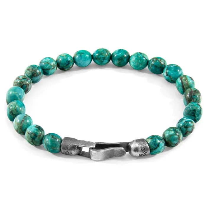 The Blue Turquoise Nachi Silver and Stone Beaded Bracelet was both designed and skilfully handcrafted completely in Great Britain. Combining British craft manufacturing with a discerning modern-minimalist style, this ANCHOR & CREW bracelet features: