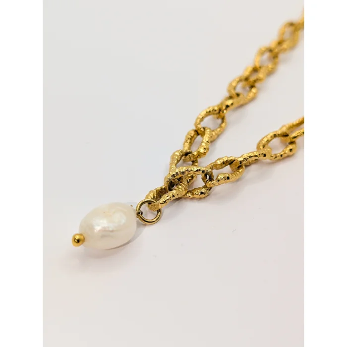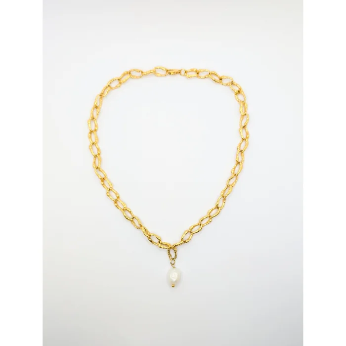 Ürün: Gold Sandy Textured Chunky Chain Pearl Pendant Necklace
