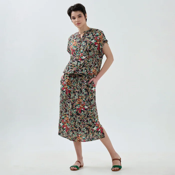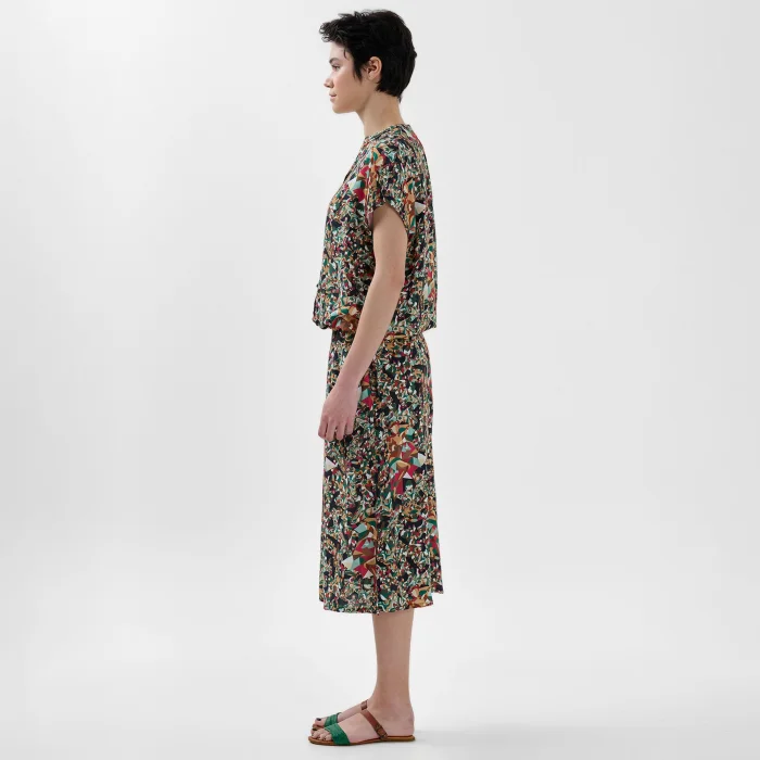 Ürün: Belden Dökümlü Yırtmaçlı Dokuma Elbise