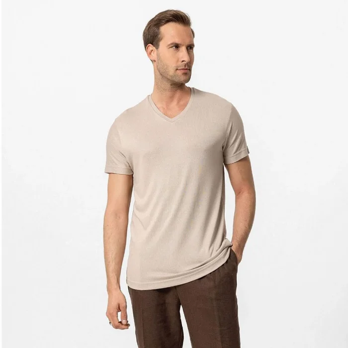 Antioch V yaka T-shirt sportif dokusu ile casual takımlamalarınıza uyum sağlıyor. Eşsiz yapısı sayesinde konfor sunan V yaka triko kullanıcılarını hem fresh hissettirir hem de tarzını yansıtmalarına yardımcı olur. Özellikle spor giyim tarzını seven Erkeklerin zevkine hitap etmesi için hazırlanan model oldukça şık tasarım detaylarıyla hazırlanır.