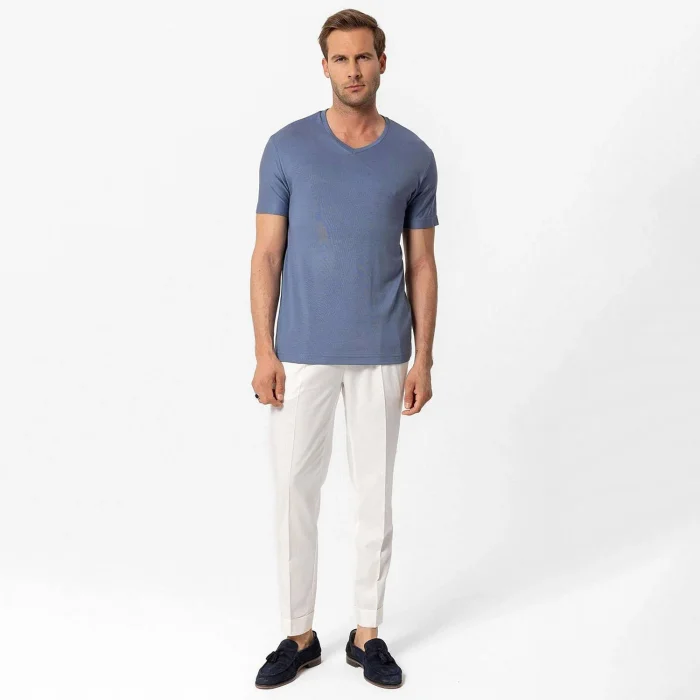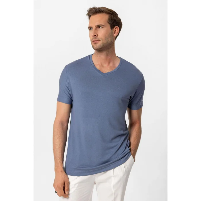 Antioch V yaka T-shirt sportif dokusu ile casual takımlamalarınıza uyum sağlıyor. Eşsiz yapısı sayesinde konfor sunan V yaka triko kullanıcılarını hem fresh hissettirir hem de tarzını yansıtmalarına yardımcı olur. Özellikle spor giyim tarzını seven Erkeklerin zevkine hitap etmesi için hazırlanan model oldukça şık tasarım detaylarıyla hazırlanır.