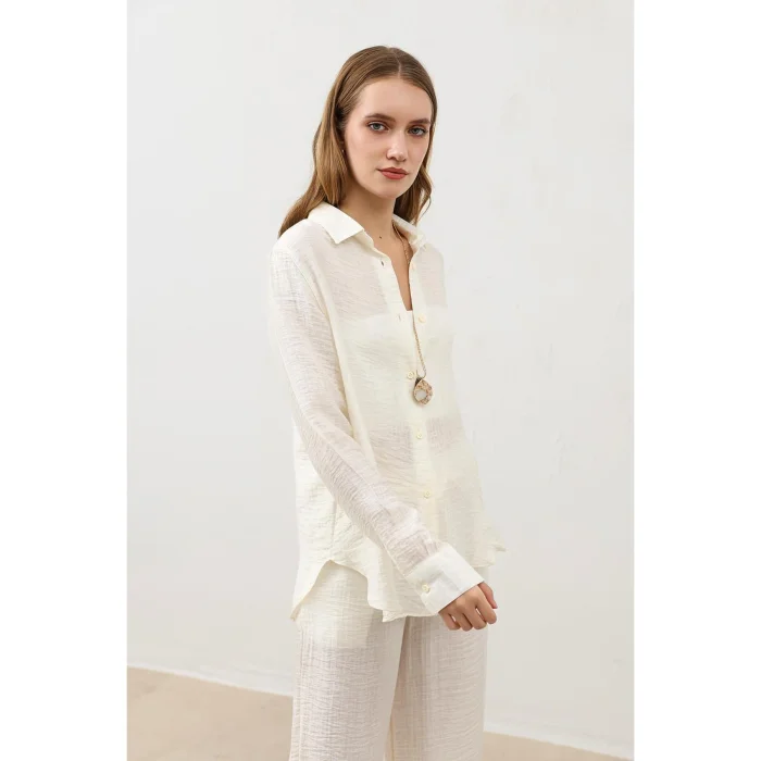Ekru hakimiyetinde özgün duruşuyla öne çıkan Antioch Uzun Kol Gömlekkarakteristik silüet yansıtan lüks tasarımıyla göz dolduruyor.Uzun Kol tasarım kapamasıyla tamamlanıyor. Lüks dokusu ve kalıbıyla son derece konforlu hissetmenizi sağlayacak tasarım günlük şehir stillerinizde ve ofis takımlamalarınızda kullanıma uyum sağlıyor. İsteğinize göre çeşitli pantolonlarınızla beraber kullanabileceğiniz tasarım şık ve iddialı görünüm kazanmanızı sağlıyor ve stilinizi bir adım öne taşıyor.