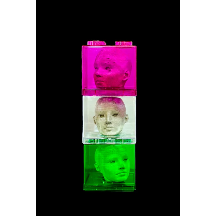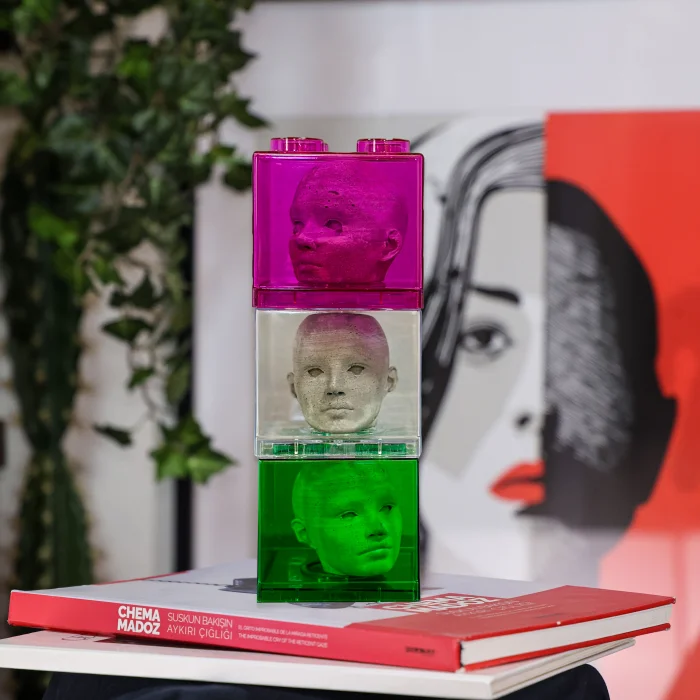Özgün bir eseridir. İnsan figürü beton, lego küpleri renkli akriliktir. Her lego parçası birbirinden bağımsızdır. Toplamda farklı sıralanabilecek üç parçadan oluşmaktadır. Sanat eseri olduğu için imzalı bir orijinallik sertifikası ile gönderilecektir. Ev ya da ofis dekorasyonu amacı ile de kullanılabilir.