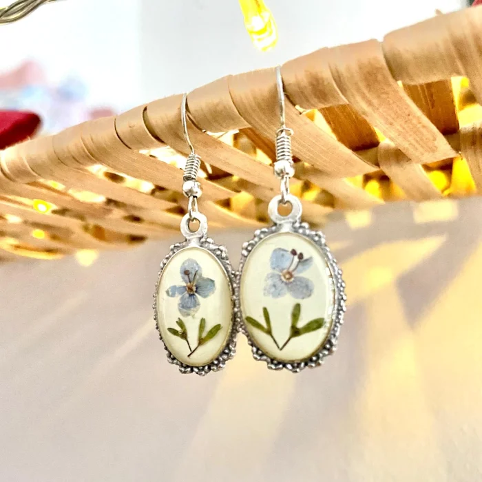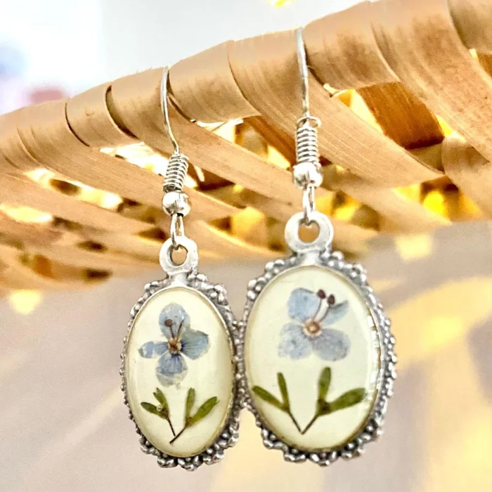 Gümüş kaplama aparat içine veronica filiformis çiçeği ile yaprakları kristal reçine ile birleştirilmiştir.