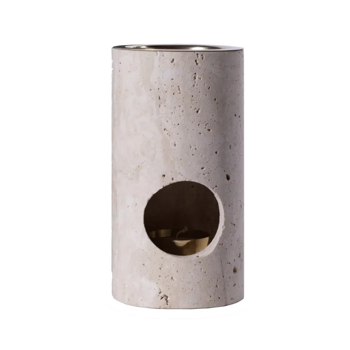 Aromatics Essence Traverten Buhurdanlık, tarihi Roma dönemine kadar uzanan bir taş olan sağlam bir traverten mermerden oyulmuş sanatsal bir üründür. Aromatics, çekici toprak tonlarında renkler, benzersiz dokular ve hoş şekilli