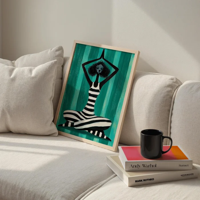 Ürün: Çizgili Poddle Köpek Yoga Ahşap Çerçeveli Tablo