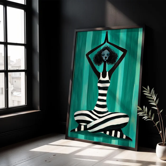 Ürün: Çizgili Poddle Köpek Yoga Ahşap Çerçeveli Tablo