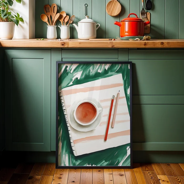 Ürün: İlham Anı Çay Ve Defter Ahşap Çerçeveli Tablo