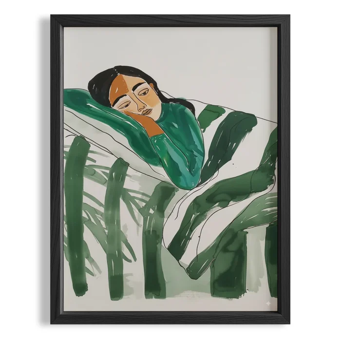 Ürün: Kadın Portre Çizgili Ahşap Çerçeveli Tablo
