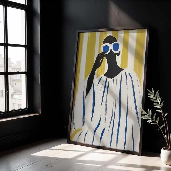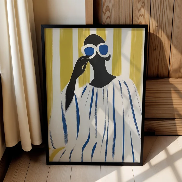 Ürün: Kadın Portre Çizgili Bohem Ahşap Çerçeveli Tablo