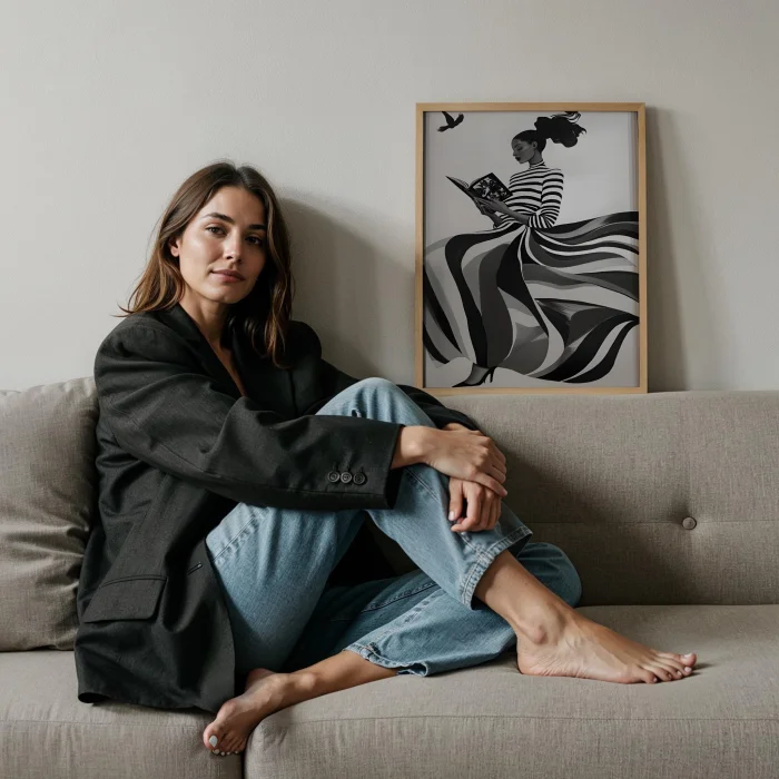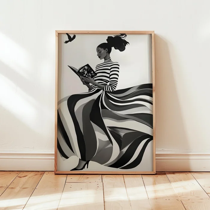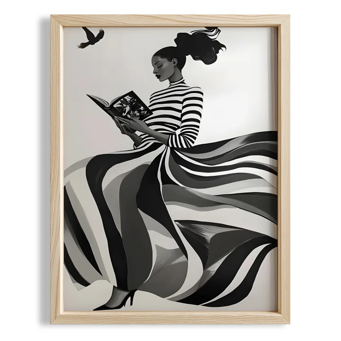 Ürün: Kadın Portre - Monokrom Çizgiler, Okuma Çerçeveli Tablo