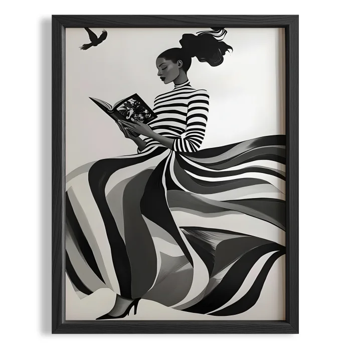 Ürün: Kadın Portre - Monokrom Çizgiler, Okuma Çerçeveli Tablo