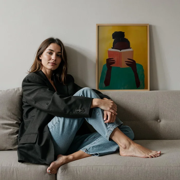 Ürün: Kadın Portre Soyut Kitap Okuyan Ahşap Çerçeveli Tablo