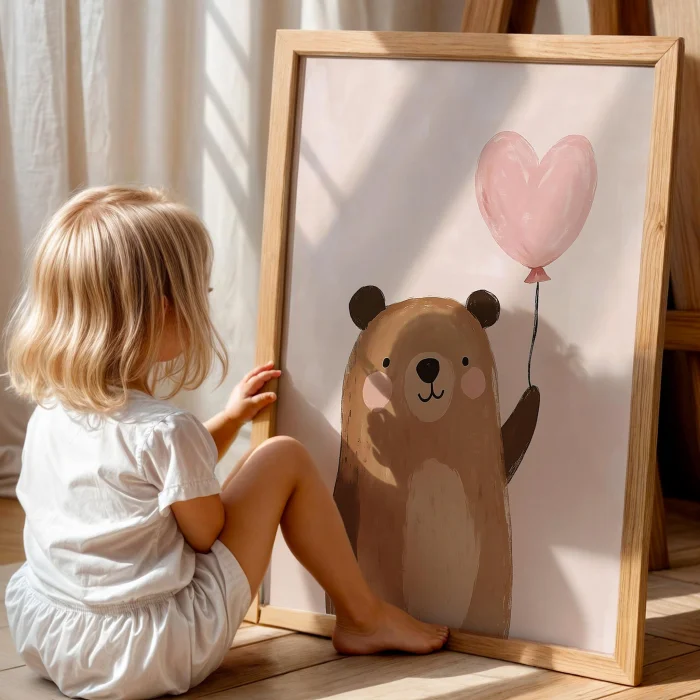 Ürün: Kalp Balonlu Sevimli Ayıcık Bohem Kız Çocuk Odası Ahşap Tablo