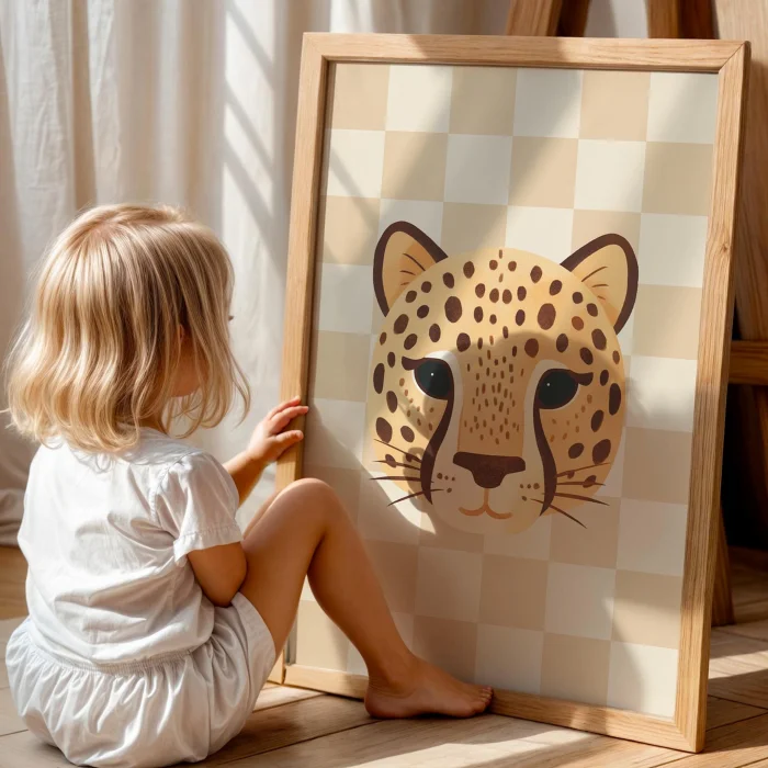 Ürün: Kaplan Sevimli Safari Hayvanları Kareli Fonlu Çocuk Odası Ahşap Tablo