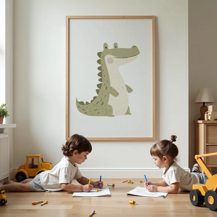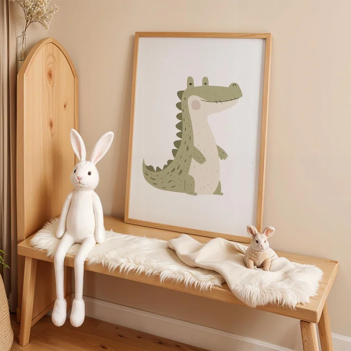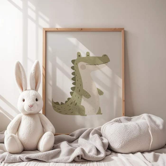 Ürün: Ayakta Duran Sevimli Timsah Çocuk Odası Ahşap Duvar Tablosu