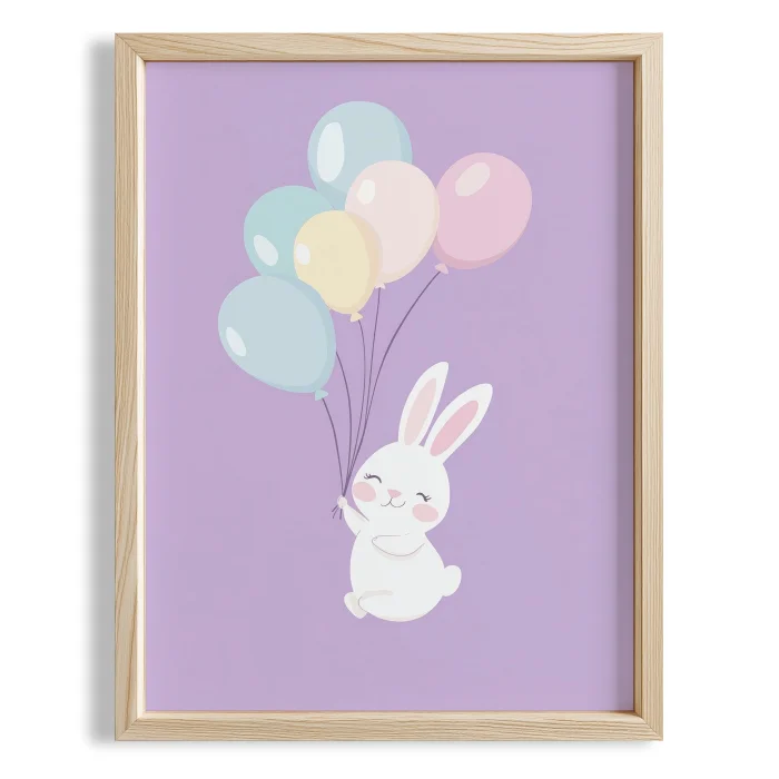 Ürün: Balonla Uçan Tavşan - Çocuk Odası Ahşap Duvar Tablosu