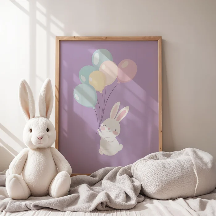 Ürün: Balonla Uçan Tavşan - Çocuk Odası Ahşap Duvar Tablosu