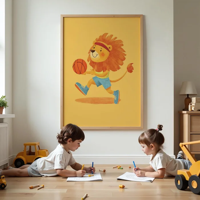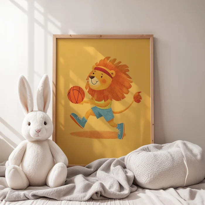 Ürün: Basketbolcu Aslan - Çocuk Odası Ahşap Duvar Tablosu