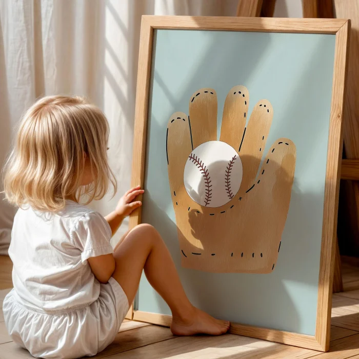 Ürün: Beyzbol Eldiveni Ve Beyzbol Topu Spor Temalı Çocuk Odası Ahşap Tablo