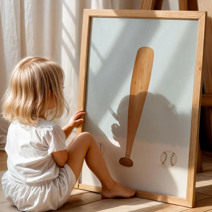 Ürün: Beyzbol Sopası Ve Topu Spor Temalı Erkek Çocuk Odası Ahşap Tablo