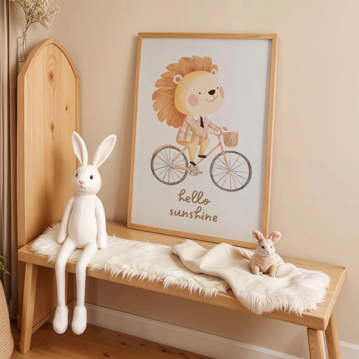 Ürün: Bisiklet Süren Aslan Öğretici Çocuk Odası Ahşap Duvar Tablosu