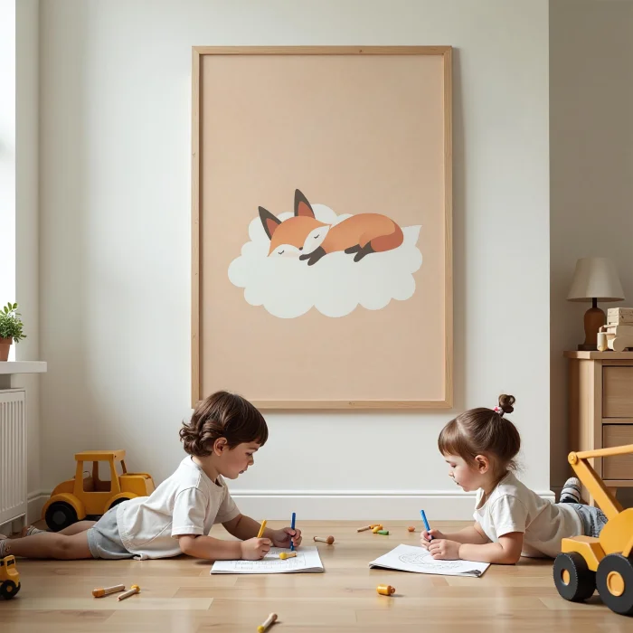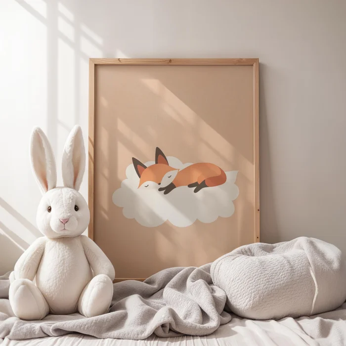 Ürün: Bulut Üstünde Uyuyan Tilki - Çocuk Odası Ahşap Duvar Tablosu