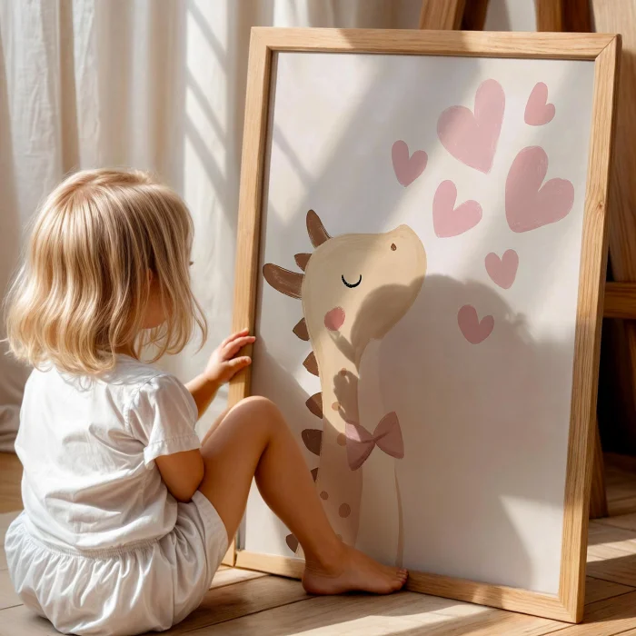 Ürün: Dinozor Sevgisi Dino Aşk 2 Bohem Kız Çocuk Odası Ahşap Tablo