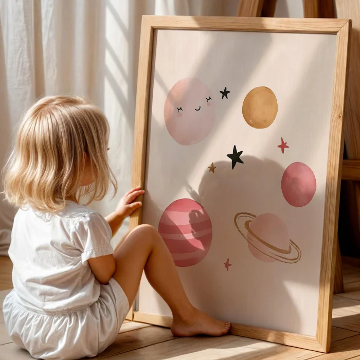 Ürün: Gülen Gezegen Uzay Temalı Kız Çocuk Odası Ahşap Tablo