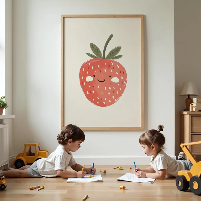Ürün: Gülen Yüzlü Tek Çilek Çocuk Odası Ahşap Duvar Tablosu