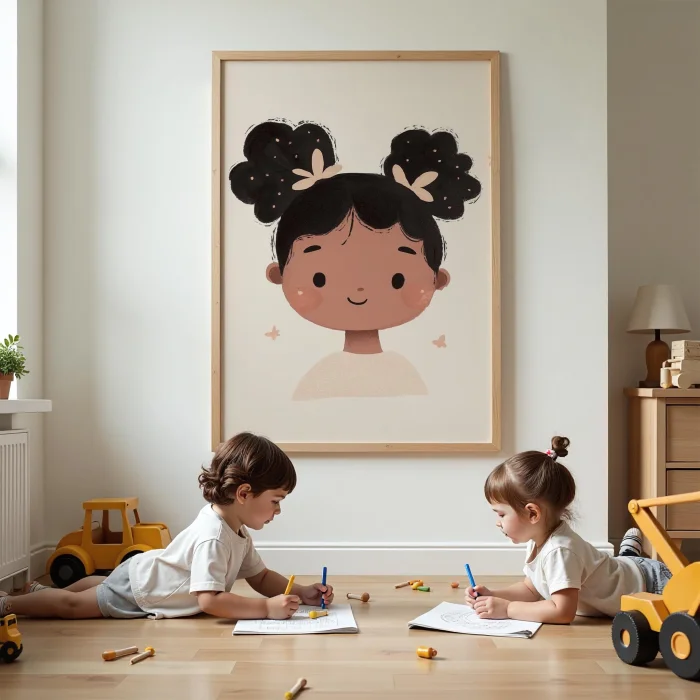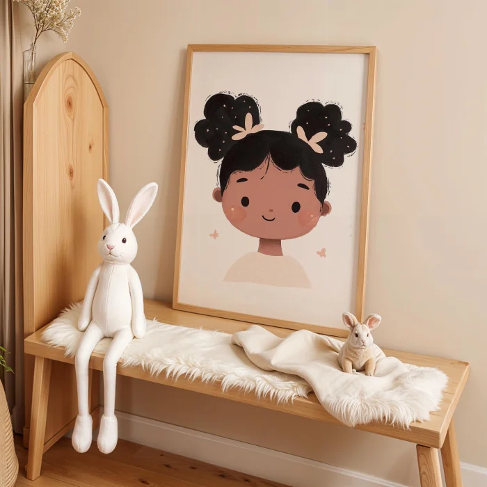 Ürün: İki Topuzlu Sevimli Kız Çocuğu Çocuk Odası Ahşap Duvar Tablosu